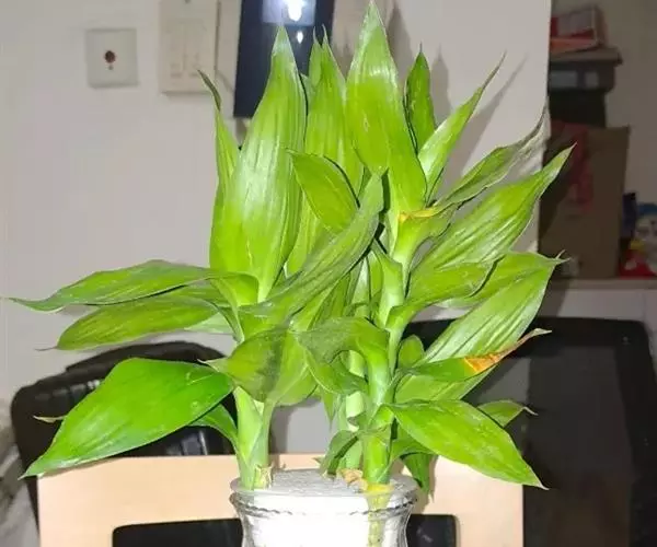 与金心富贵竹不同,富贵竹的叶片中央有一道银白色的纵条纹。