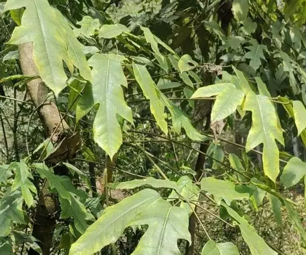 乔木或灌木,高3-8米;小枝粗壮,幼时密生黄棕色星状绒毛,不久毛即脱净;髓白色,薄片状。叶有小叶4-7;叶柄长4-16厘米,最长可至70厘米,幼时密生星状绒毛,成长后除基部外无毛;小叶片纸质至薄革质,稀革质,形状变化很大,椭圆状长圆形、卵状长圆形、卵状披针形或长圆状披针形,稀线状长圆形,长6-20厘米,最长可达35厘米,宽2-8厘米或稍宽,先端急尖至短渐尖,基部钝形至圆形,有时截形,上面无毛,下面密生灰白色或黄棕色星状绒毛,老时变稀,边缘全缘或疏生不规则的牙齿,有时有不规则缺刻或羽状分裂,中脉下面隆起,侧脉8-12对,有时多至15对以上,上面平坦或微隆起,下面稍隆起,网脉上面稍下陷,稀平坦,下面为绒毛掩盖而不明显;小叶柄粗壮,不等长,中央的较长,两侧的较短,被毛和叶柄一样。花无梗,密集成穗状花序,再组成长40厘米以上的大圆锥花序;主轴和分枝幼时均密生星状绒毛,后毛渐脱稀;苞片及小苞片三角形,均密生星状绒毛;花白色;萼长1.5-2毫米,疏生星状短柔毛,有5齿;花瓣5,三角状卵形,无毛;雄蕊,,花丝长约3毫米;子房4-5室;花柱合生成柱状,长不及1毫米,柱头不明显;花盘隆起。果实球形,紫黑色,直径约4毫米,几无毛;宿存花柱长1.5-2毫米,柱头头状。花期10-11月,果期次年1月。该种小叶片形状变异虽大,但小叶片下面密生白色或黄棕色星状绒毛,花密集成圆锥状的穗状花序,容易识别。