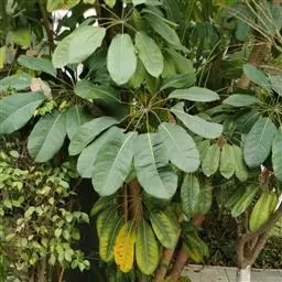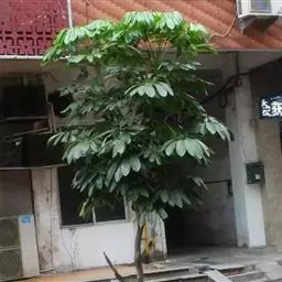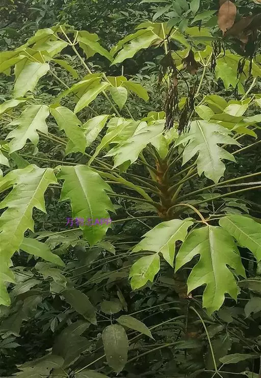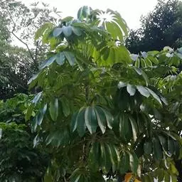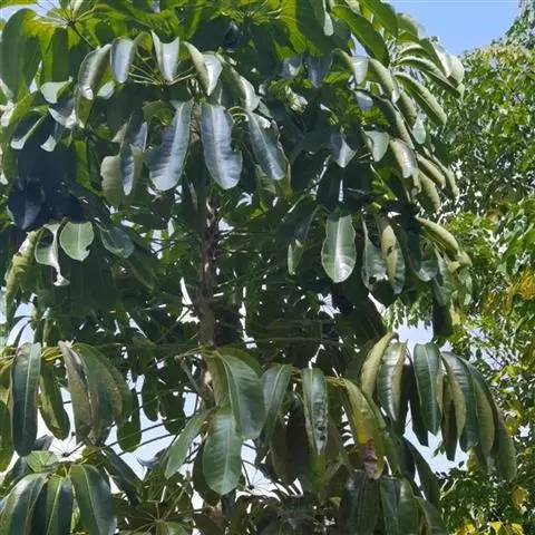 昆士兰伞木,吕松鹅掌柴 ,称昆石兰遮树,澳洲鸭脚木、方式叶鹅掌柴、伞树、大叶伞。叶片阔大,柔软下…