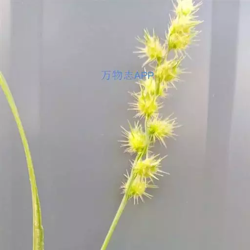 总状花序直立,长4-8厘米,宽约1厘米;花序主轴具稜粗糙;刺苞呈稍扁圆球形,长5-7毫米,宽与长近相等,刚毛在刺苞上轮状着生,具倒向粗糙,直立或向内反曲,刺苞背部具较密的细毛和长绵毛,刺苞裂片于1/3或中部稍下处连合,边缘被平展较密长约1.5毫米的白色纤毛,刺苞基部收缩呈楔形,总梗密具短毛,每刺苞内具小穗2-4(-6)个,小穗椭圆状披针形,顶端较长渐尖,含2小花;颖薄质或膜质,第一颖三角状披针形,先端尖,长为小穗的1/2,具1脉;第二颖长为小穗的3/4-2/3,具5脉;第一小花雄性或中性,第一外稃与小穗等长,具5脉,先端尖,其内稃狭长,披针形,长为其第一外稃2/3,第二小花两性,第二外稃具5脉,包卷同质的内稃,先端尖,成熟时质地渐变硬;鳞被缺如;花药长约1毫米,顶端无毫毛;柱头帚刷状,长约3毫米。