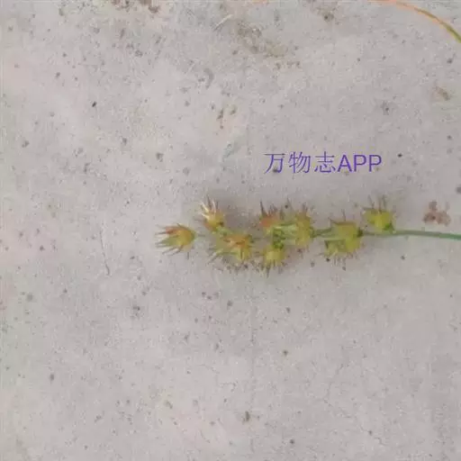 蒺藜草(学名:Cenchrus echinatus L.)一年生禾草,高15-50厘米,秆压扁,一侧具深沟,基部曲膝状或横卧地面,近地面节上生根,下部各节常具分枝。叶鞘松弛,叶舌短小,叶片线形,质地柔软,上面粗糙,无毛或疏被长柔毛。总状花序直立,刺苞球形,背部被细毛,边缘被白色纤毛,顶端具倒向糙毛,基部具一圈小刺毛,裂片直立或反曲,但彼此不相连接;内稃狭长,长与外秆近等;第二小花的外稃质地较厚,具5脉;内稃稍短。