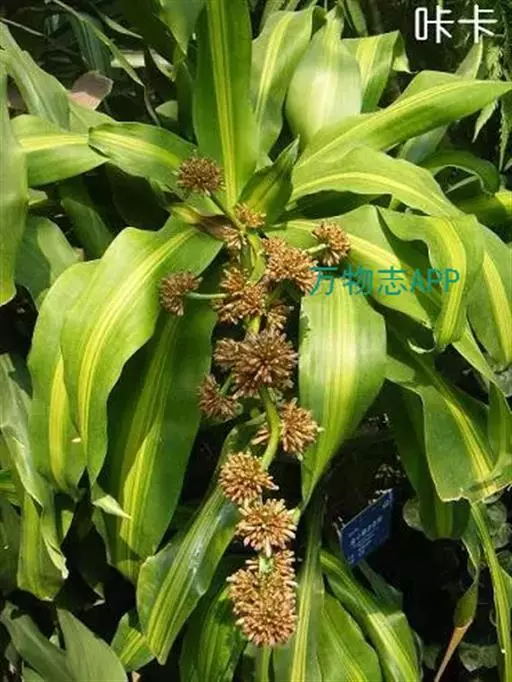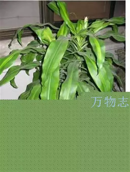叶片宽大。叶簇生于茎顶,长椭圆状披针形,无柄;叶长40-90厘米、宽6-10厘米,弯曲成弓形,叶缘呈波状起伏,叶尖稍钝;鲜绿色,有光泽。穗状花序,花小,黄绿色,芳香。