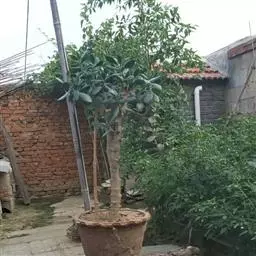 乔木状或灌木状植物,在原产地可高达6米以上,茎粗大,多分枝。树皮灰褐色或淡褐色,皮状剥落。盆栽高50-100厘米。树干直立,有时分枝。