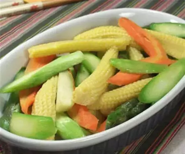 五彩时蔬是一道美食,制作材料有大白菜、猪肚、草虾、鱿鱼、海参、火腿、香菇等。