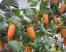果球形,直径1.5-3厘米,嫩时绿色,熟时黄色,变无毛;种子褐色,长椭圆形,长约2厘米,宽约7毫米,侧扁;宿存萼4深裂,裂片革质,卵形,长1.2-1.8厘米,宽约8毫米,先端急尖,有纵脉9条;果柄纤细,长3-4(6)厘米。花期4-5月,果期8-10月。