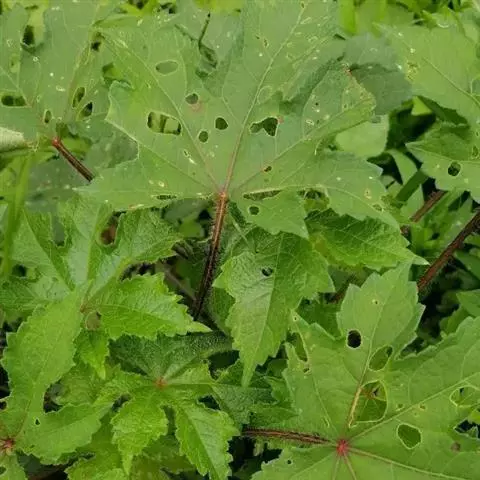 咖啡黄葵在正常条件下植株生长旺盛,主侧枝粗壮,叶片肥大,往往开花结果延迟。可采取扭枝法,即将叶柄扭成弯曲状下垂,以控制营养生长。生育中后期,对已采收嫩果以下的各节老叶及时摘除,既能改善通风透光条件,减少养分消耗,又可防止病虫蔓延。采收嫩果者适时摘心,可促进侧枝结果,提高早期产量。采收种果者及时摘心,可促使种果老熟,以利籽粒饱满,提高种子质量。