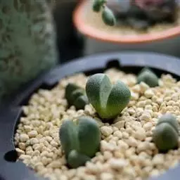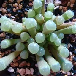 五十铃玉是番杏科窗玉属的多年生肉质植物,别名有“棒叶花”“婴儿脚趾”。植株高5厘米,叶片淡绿色,肉质,…