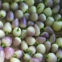 (Var.cerasiforme Bailey)类型朝天椒品种:主要有樱桃辣、 樱桃椒 日本五彩樱桃椒、黑珍珠、幸运星、樱桃辣椒等。樱桃椒多作为观赏品种利用,也可以大面积生产。樱桃辣为云南省建水县地方品种,又称团辣,主产于建水县。
