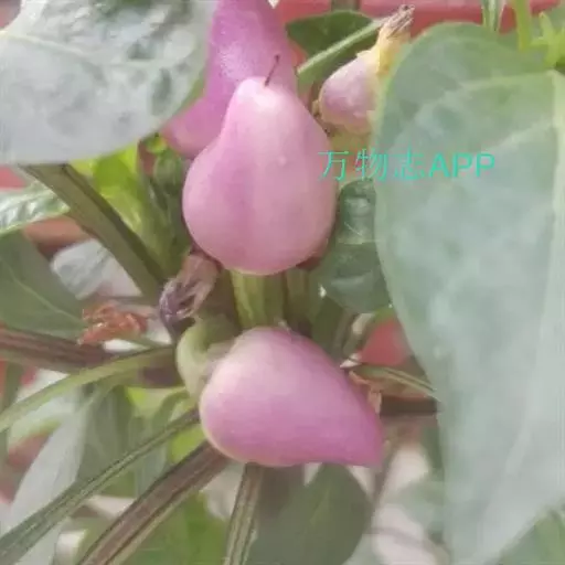 植物体多二歧分枝。叶长4-7厘米,卵形。花常单生于二分叉间,花梗直立,花稍俯垂,花冠白色或带紫色。果梗及果实均直立,果实较小,圆锥状,长约1.5 (-3)厘米,成熟后红色或紫色,味极辣。