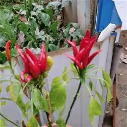朝天椒茄科辣椒属一年或多年生草本植物;卵形;花通常单只生长于二分叉间,花梗直立,花稍俯垂,…