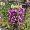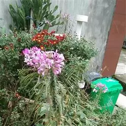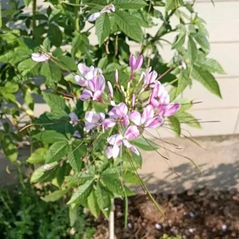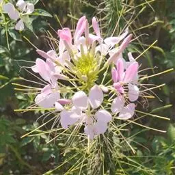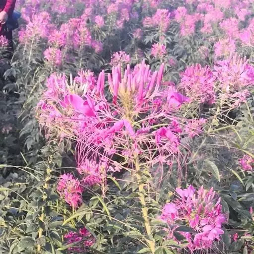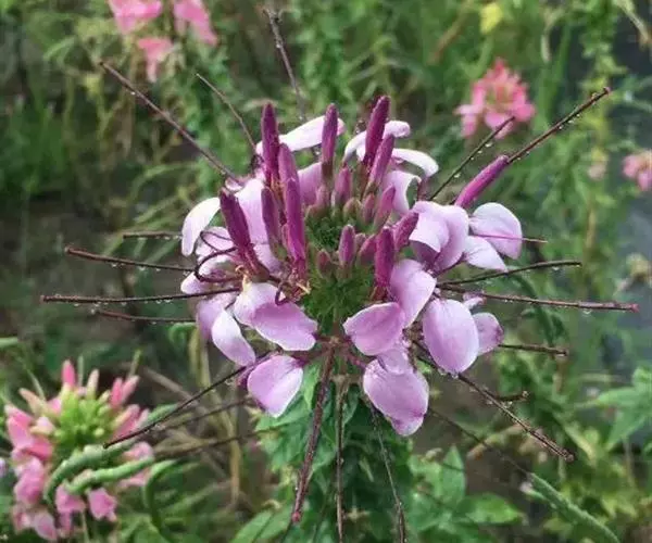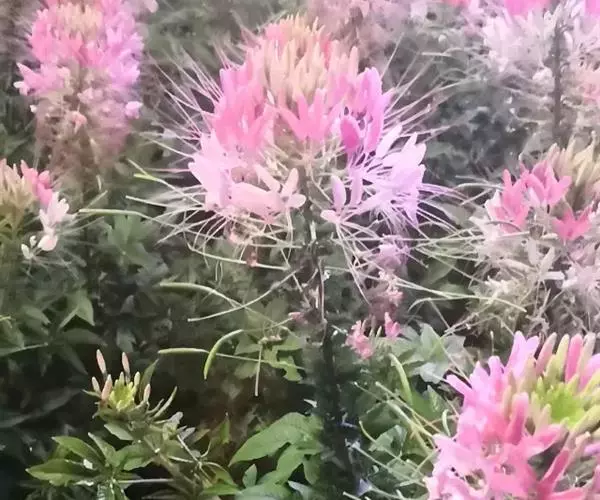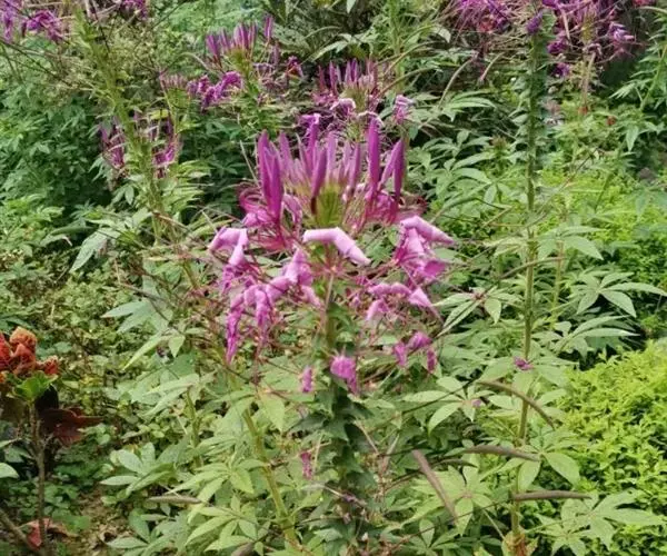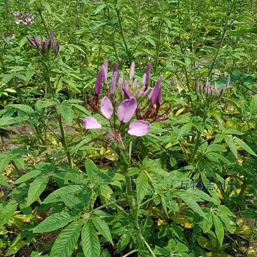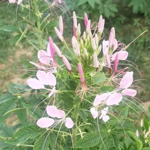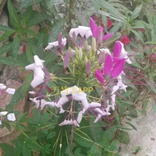 醉蝶花(学名:Cleome spinosa Jacq.):一年生草本植物。花茎直立,株高40厘米-60厘米,有的品种可达1米, 其茎上长有粘汁细毛,会散发一股强烈的特殊气味;叶片为掌状复叶,小叶5枚-7枚,为矩圆状披针形;总状花序顶生,花由底部向上次第开放,花瓣披针形向外反卷,花苞红色,花瓣呈玫瑰红色或白色,雄蕊特长;蒴果圆柱形,种子浅褐色。花期在6月-9月,其花茎长而壮实,花朵盛开时,总状花序形成一个丰满的花球,朵朵小花犹如翩翩起舞的蝴蝶,非常美观。中国无野生,各大城市常见栽培。原产热带美洲,全球热带至温带栽培以供观赏,也是一种优良的蜜源植物。
