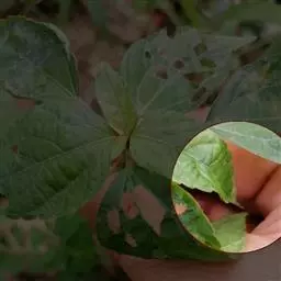 褐纹病:症状:成株下部叶片先受害,叶子出现灰白色水浸状圆形斑点,逐渐变褐色,其上轮上许多小黑点,后期病斑扩大联片,常常造成干裂、穿孔、脱落。茎杆多在基部,病斑扩大,环茎一周时常造成整株死亡,果实受害最严重,产生褐色凹陷圆形斑,上生许多小黑点,排列成轮纹状。