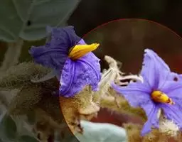 花序腋外生,短,约3-8朵花,最下面的花基生,花序单1或分枝,较上部花密集,轴长约10-15毫米,花梗长约5-12毫米,具有长约0.5-2毫米的皮刺,花5数(栽培的常6-9数),萼钟形,直径约0.8-1.5厘米,外面被星状毛,萼筒上具有与花梗相似的直刺,萼齿稍不相等,卵形至卵状披针形,长约5-7毫米,宽约3-4毫米,先端急尖,反卷;花冠白色,略带紫晕,星形或近星状辐形,直径约15-25毫米,内面及外面均被星状绒羌,花冠筒长不到1毫米,冠檐长约6.5毫米,瓣片披针形,长约6毫米;花丝长约0.6-1毫米,无毛,花药披针状椭圆形,长4-5毫米,宽0.7-1毫米,两端凹缺,孔顶生;子房近圆球形,直径约2.5-3毫米,4-8室,具槽,下部光滑,上部密被星状毛,花柱直立,长约5.5-7.5毫米,被具柄星状毛,柱头厚而钝,2-4浅裂。