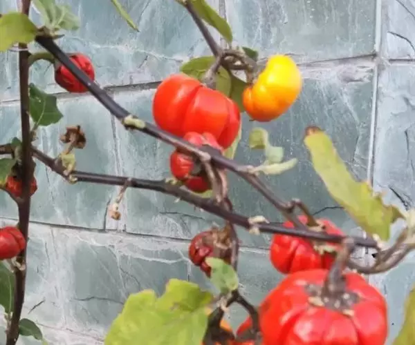 浆果橙黄色或猩红色,圆形,顶基压扁,直径约1.5-2厘米(栽培的可达3.7-4.6厘米),具4-6沟棱,每棱上又往往有1浅沟。种子肾形,淡黄色,直径2-3.5毫米。