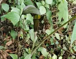 黄苞南星 Schott)是天南星科、天南星属植物,块茎近球形,鳞叶锐尖,叶片鸟足状分裂,…