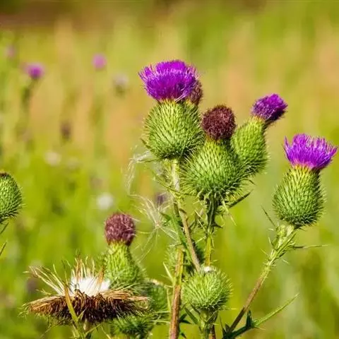 白术(学名:Atractylodes macrocephala Koidz.):菊科苍术属多年生草本植物,高可达60厘米,结节状根状茎。茎直立,全部光滑无毛。叶互生,叶片羽状全裂,侧裂片倒披针形、椭圆形或长椭圆形,顶裂片比侧裂片大,全部叶质地薄,纸质,两面绿色,无毛,头状花序单生茎枝顶端,苞叶绿色,针刺状羽状全裂。总苞宽钟状,顶端紫红色。瘦果倒圆锥状,8-10月开花结果。