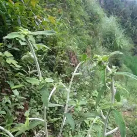 一年或二年生草本,高30-100厘米。茎不分枝或上部分枝,全株被粗刺毛。下部叶长卵圆形,长圆形或匙形,顶端尖或渐尖,基部楔状下延,有三出脉,边缘有细锯齿,有具翅的柄,长8-12厘米;上部叶长圆披针形,顶端渐尖,边缘有细至粗疏锯齿或全缘,无柄或具短柄,长3-5厘米,宽1-1.5厘米,两面被白色密刺毛。