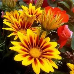德比系列:株高约20厘米,株形与‘天星’系列相比,更为紧凑,花金黄色,花色艳丽,花径约4厘米,开花密集,小叶,是理想的盆栽品种。