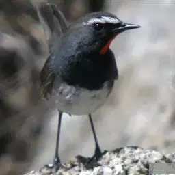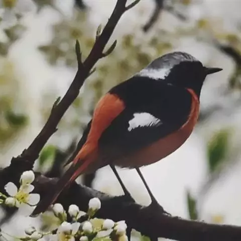 赭红尾鸲:小型鸟类,体长13-16厘米。雄鸟前额、头侧、颈侧、颏至胸概黑色,头顶和背灰色或黑色,…