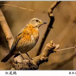 红尾鸫,是雀形目鸫科鸫属的鸟类。它的体背颜色以棕褐为主;下体白色,…