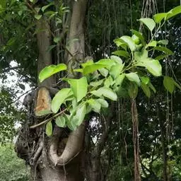 三角榕为常绿乔木或小乔木。叶片近三角形,薄肉质,全缘,长4~6厘米,宽3~5厘米,浓绿色。