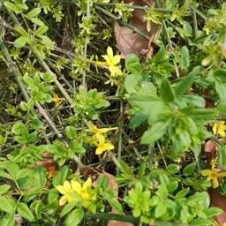 云南黄素馨 【植物特性】 常绿藤状灌木,小枝无毛,四方形,具浅棱。叶对生,小叶3枚,长椭圆状披针形,顶端1枚较大,基部渐狭成一短柄,侧生2枚小而无柄。花单生,淡黄色,具暗色斑点,花瓣较花筒长,常近复瓣,有香气。花期3~4月。植株萌蘖力强。