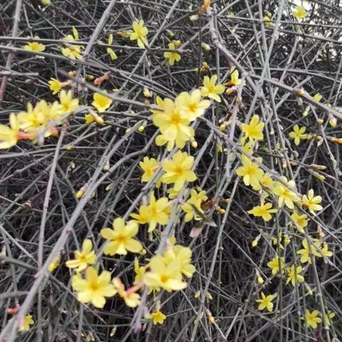 迎春花,木犀科素馨属的多年生木本植物,小枝细长直立或者呈拱形下垂;叶片呈卵形或椭圆形;花单生于叶腋处,…