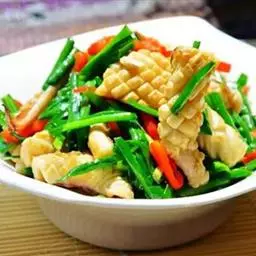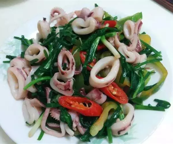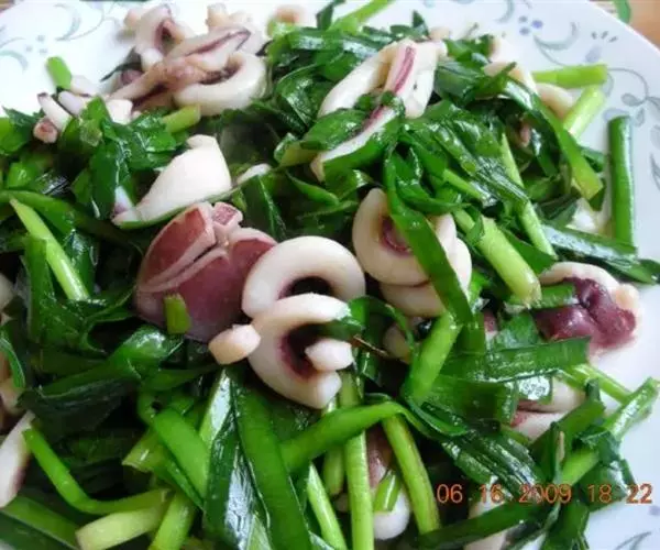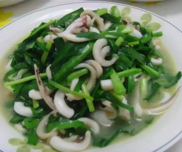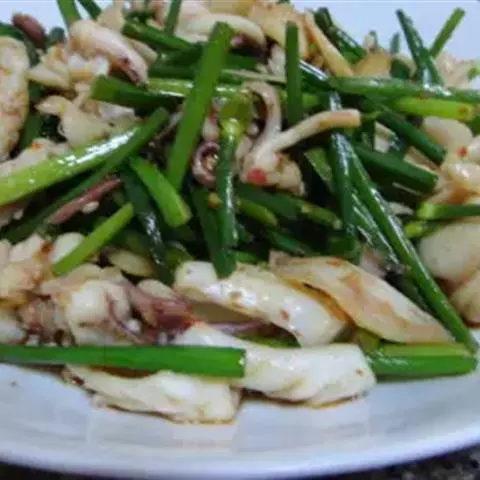 调料:大蒜(白皮)10克,姜5克,植物油60克,酱油5克,料酒10克,盐3克教您韭菜炒鱿鱼怎么做,如何做韭菜炒鱿鱼才好吃 1. 韭菜、辣椒分别洗净;