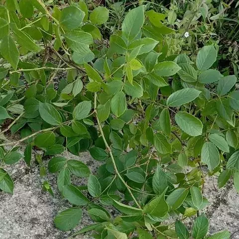 多年生草本,具白色粗壮主根。匍匐茎长达60~90cm,株高15至20厘米,匍匐茎长达50至90厘米。有毛。单叶互生,5~7深裂。花径6cm,紫红色,花期夏季。花瓣5枚,玫瑰红色,花心白色,花期7至8月,果期9至10月。