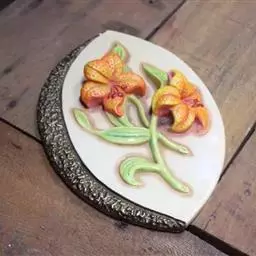 3.用切模(小刀)切出花形,淋上糖桂花(蜂蜜或炼乳)。
