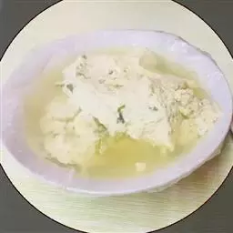 2、将盛吉利丁片的碗放入热水内,使吉利丁片熔化。