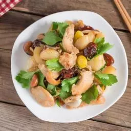 主料:豆腐 400克 辅料:虾仁 150克 毛豆 50克