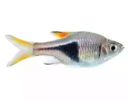 腹腔膜灰白色,带有小黑点。生活时背部灰绿色,体侧银白色,腹部白色。背鳍和尾鳍的上叶灰绿色,腹鳍、臀鳍和尾鳍的下叶鲜红色,胸鳍灰黄色。