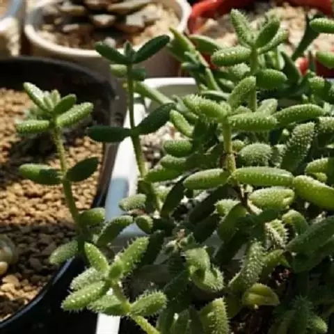 姬红小松(T. bulbosum)又名小松波,具肥厚多肉的黄褐色茎干,多分枝茎、枝粗糙、肉质叶对生,纺锤形,较紫晃星小,其它特征同紫晃星。
