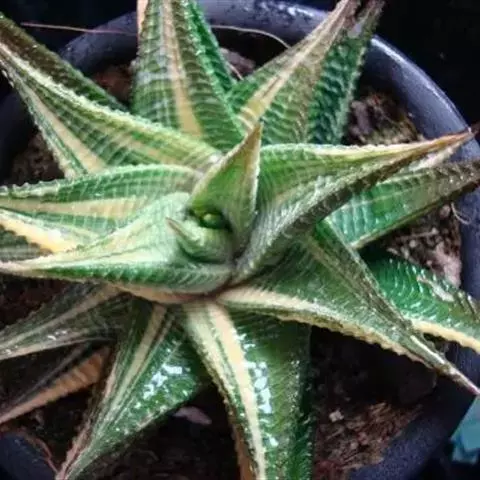 条纹十二卷锦百合科十二卷属。叶片紧密轮生在茎轴上,呈莲座状;叶三角状披针形,先端锐尖;叶表光滑,…