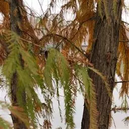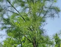 落羽杉 Rich.),杉科落羽杉属木本植物。树干尖削度大,基部通常膨大,具膝状呼吸根,树皮棕色,…