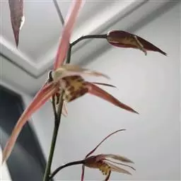 大尖囊兰 Sweet):根簇生,扁平,长而弯曲。茎短,长1-1.5厘米,具3-4枚叶。叶二列,纸质…