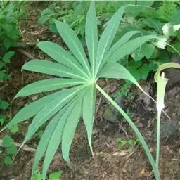 黄苞南星 Schott)是天南星科、天南星属植物,块茎近球形,鳞叶锐尖,叶片鸟足状分裂,…