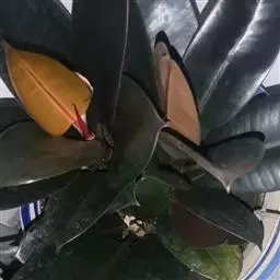 印度榕,别名橡皮树,桑科榕属多年生常绿乔木植物。株高30米;树皮灰白色,平滑;叶厚革质,…