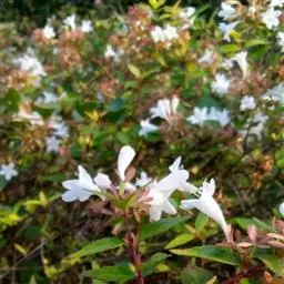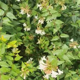 大花六道木,忍冬科六道木属半常绿矮生灌木。其幼枝为红褐色,有短柔毛;叶片倒卵形为墨绿色,…