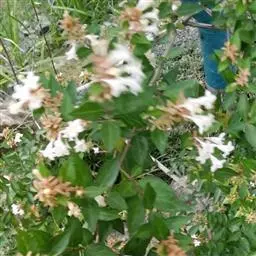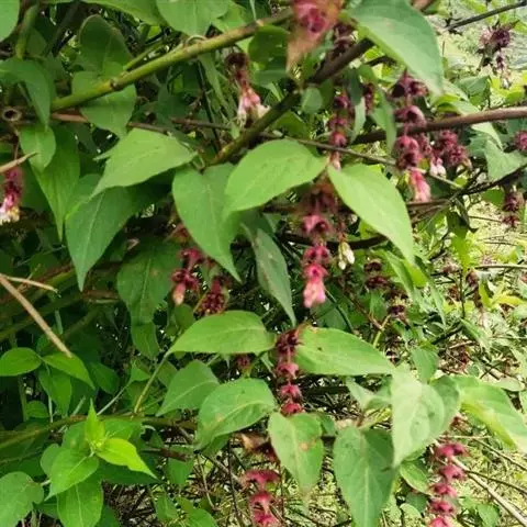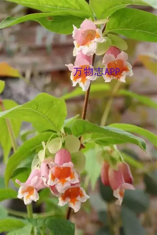 落叶灌木,高达4m;幼枝被柔毛。冬芽具3-4对鳞片。叶椭圆形至宽披针形,长5-10cm,宽2-4cm,顶端渐尖至长渐尖,基部钝圆至近圆形,全缘或稀具疏浅齿,上面疏生微柔毛,主脉下陷,下面沿脉被白色长柔毛,边缘具睫毛;叶柄长约5mm。伞房状聚伞花序生于短枝顶部叶腋;小苞片2对,一对较小,卵形,不等形,另一对较大,肾形;萼檐膜质,被柔毛,裂至2/3处,萼齿钻状条形,不等长,长约4-5mm;花冠白色至粉红色,钟形,长2-4cm,基部一侧有浅囊,二唇形,喉部具柔毛及黄色块状斑纹;花丝无毛;花柱较雄蕊长,不伸出。果实圆卵形,被柔毛,顶端狭长,2对宿存的小苞片明显地增大,其中一对网脉明显,肾形,以其弯曲部分贴生于果实,长2.5-3cm,宽1.5-2cm;种子扁,内面平,外面延生成脊。花期5-6月,果熟期5-11月。