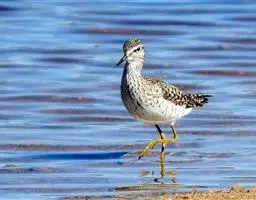 彩鹬(学名:Rostratula benghalensis)是彩鹬科、彩鹬属下的一种小型涉禽,体长25cm左右。嘴细长,尖端向下弯曲,雄鸟头具淡黄色中央纹。眼周黄色,并向后延伸成一柄状带。背具白色横斑,两侧具黄色纵带。胸侧至背有一白色宽带。雌鸟喉和前颈粟色。眼周和向后延伸的柄白色。幼鸟与雄鸟相似。 虹膜暗褐色嘴黄褐色。脚灰绿色。