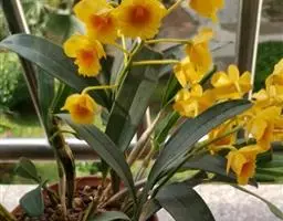 杓唇石斛(学名:Dendrobium moschatum (Buch.-Ham.) Sw.):茎粗状,质地较硬,直立,圆柱形,不分枝,具多节。叶革质,二列;互生于茎的上部,长圆形至卵状披针形。总状花序出自去年生具叶或落了叶的茎近端,下垂,长约20厘米,疏生数至10余朵花;花深黄色,白天开放,晚间闭合,质地薄;花瓣斜宽卵形,长2.6-3.5厘米,宽1.7-2.3厘米,先端钝,具7条脉;唇瓣圆形,边缘内卷而形成杓状。花期4-6月。