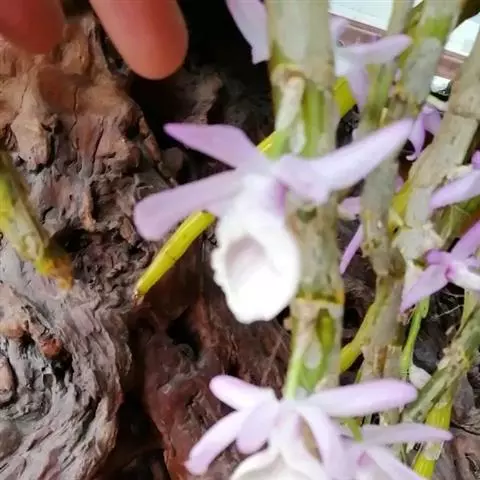 玫瑰石斛是兰科石斛属的多年生附生草本植物。茎斜下或下垂,青绿色,圆柱形,…