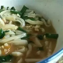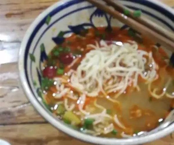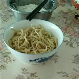 三、在另一锅里下面,等面熟后捞出。给每人尝芫块头的样子后,乘制作好的汤,即可食用。