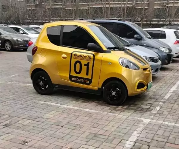 新大洋·知豆纯电动车的前大灯设计时尚,熏黑式的设计使其显得十分精致,而灯组下方的晶钻装饰也是其看起来不像是既往印象里的电动车。