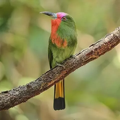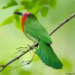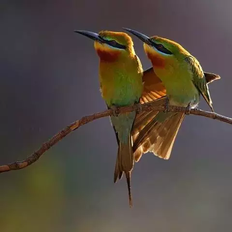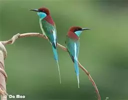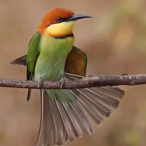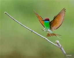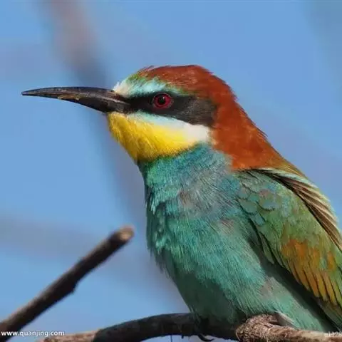 栗喉蜂虎是蜂虎科蜂虎属的鸟类。有热带鸟类羽毛艳丽的特征:喉部是栗红色的,黑色的过眼纹,…