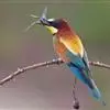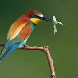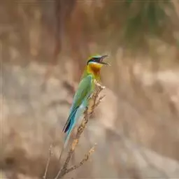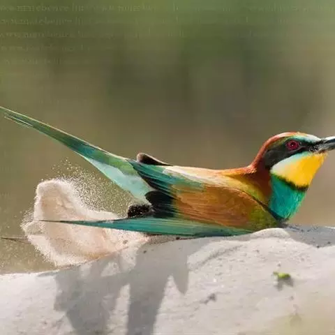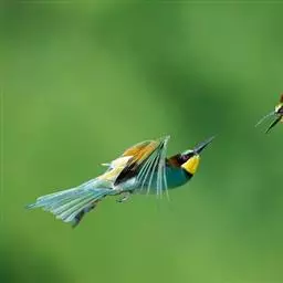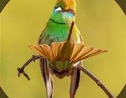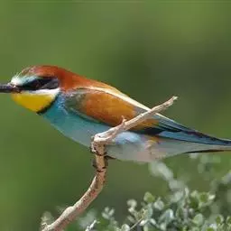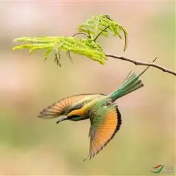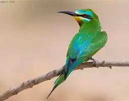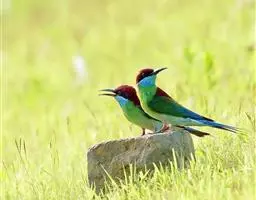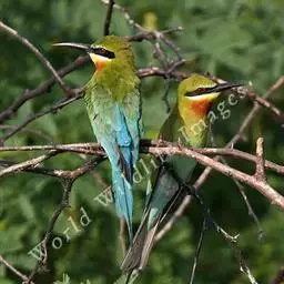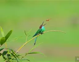 蓝颊蜂虎:是蜂虎科、蜂虎属的鸟类,共有2个亚种。体长27-33厘米,翼展46-49厘米,…