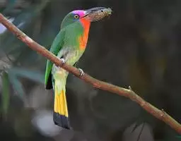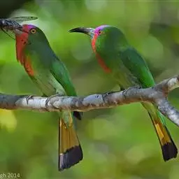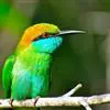 蓝须夜蜂虎是佛法僧目、蜂虎科的鸟类,体长约30厘米,是绿色林栖型蜂虎,蓝色的胸羽蓬松,嘴厚重而下弯…