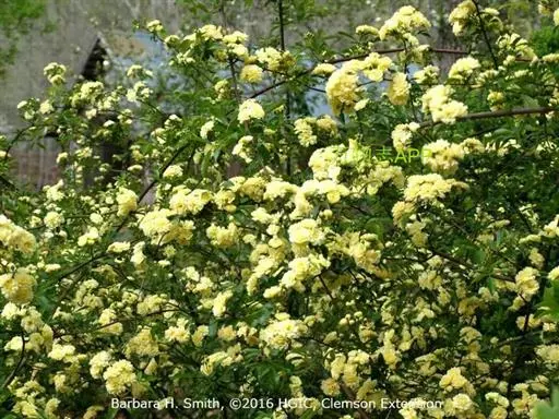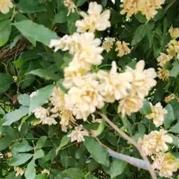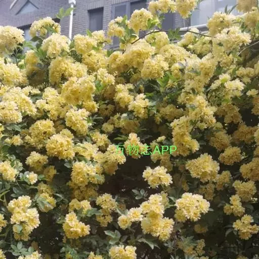 黄木香花(学名:Rosa banksiae Ait. form. lutea (Lindl.) Rehd.)是攀援小灌木,高可达6米;小枝圆柱形,无毛,有短小皮刺;叶3-5,叶片椭圆状卵形或长圆披针形,花小形,多朵成伞形花序,萼片卵形,花黄色重瓣,无香味,倒卵形,花期4-5月。花朵较多,花期较长。产自中国江苏。